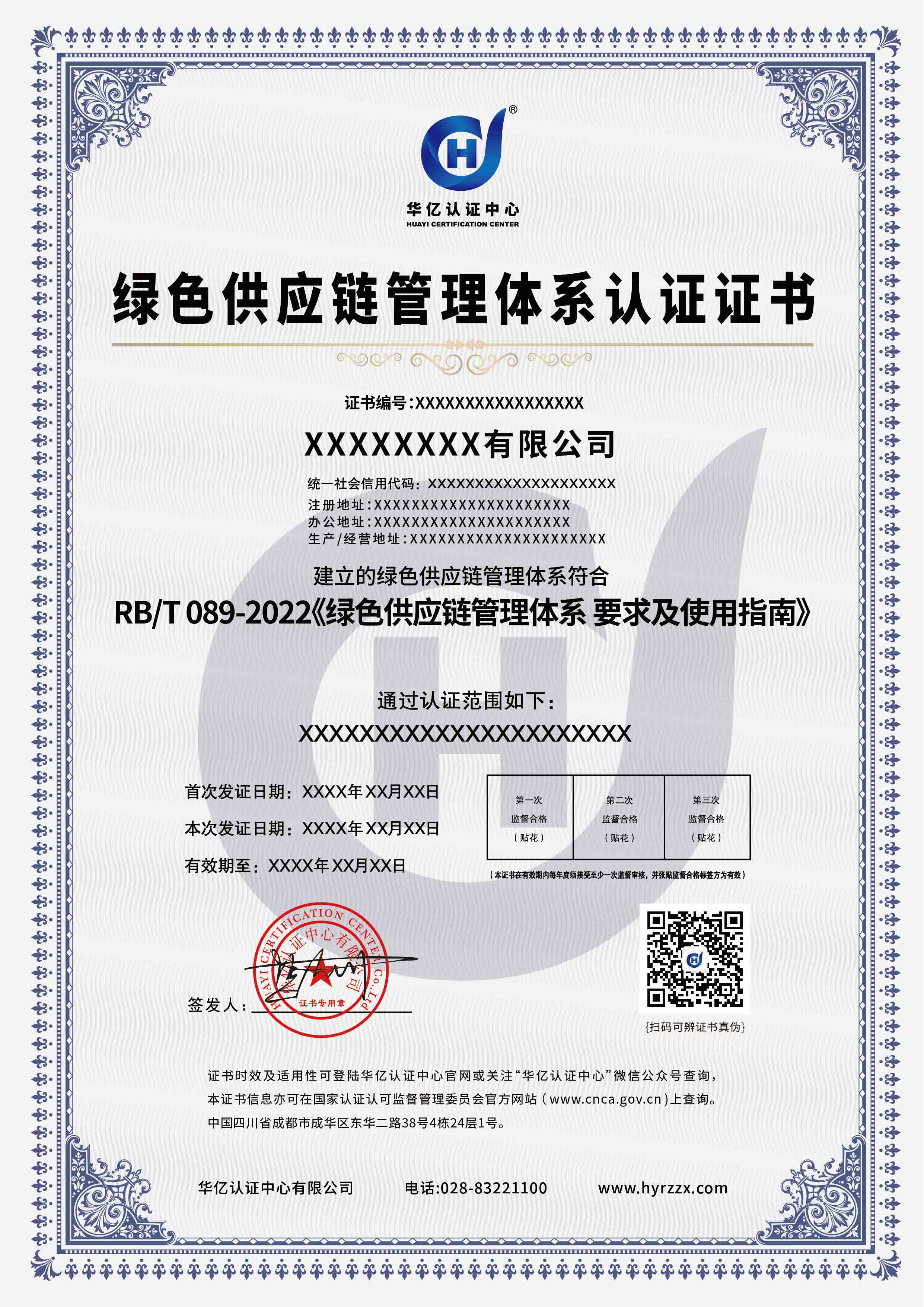 绿色供应链管理体系认证证书